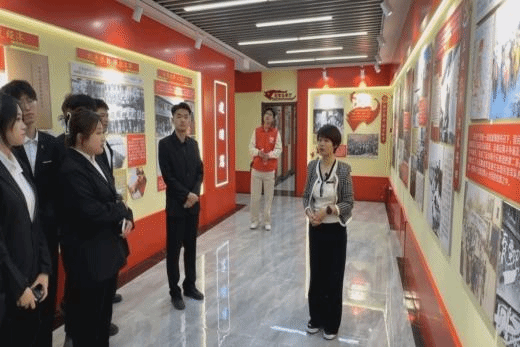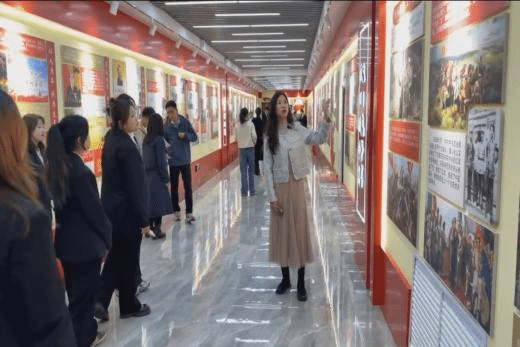 随后,马克思主义学院教师团队在党史文化长廊为学生同上一堂行走的思政课。从开天辟地的大事变——中国共产党的诞生讲起,沿着党的百年奋斗历程,以伟大事件和中国精神为主线,教师们生动地向学生展示了中国共产党为争取民族独立、人民解放和实现国家富强、人民幸福所做的努力,让学生接受了一次别开生面的红色精神的洗礼。