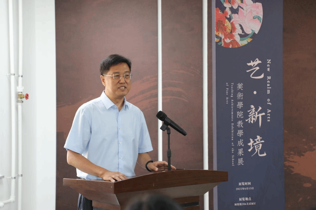 6月23日上午,我校美术学院“艺·新境”2025年教学成果展开幕式在美术学院展厅隆重举行。校党委书记、校长陈建军,党委副书记张宝利,副校长赵世国、王宏岩,纪委书记郜雅杰,副校长崔宝秋出席本次开幕式并参观展览。组织部、宣传统战部、教务处、督导教育中心、素质部等职能部门负责人、各学院院长以及美术学院师生代表出席开幕式,共同见证这一艺术与教育交汇的盛事。开幕式由美术学院数字媒体技术教研室主任周怡媛主持。