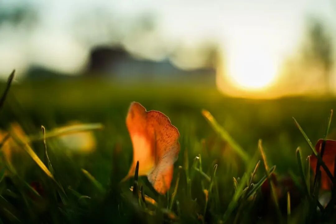 当第一缕阳光越过屋檐,这片草坪上便成了校园中最为温柔的地方。镜头俯下,用最平和的视角来与晨光中的草叶交谈,几瓣橙红的落叶静卧其间,像不小心遗落的音符,为这抹翠绿增添了起几分秋意,细密的草茎如绿色的琴弦,被朝阳镀上金边,每一根都挺直了腰杆,仿佛青春的少年在广阔的天地奋发向上。