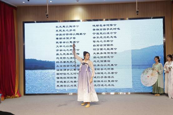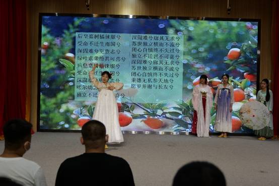 此次“弘扬端午文化,涵养爱国情怀”主题活动分为两部分。第一部分为“了解端午,缅怀屈原”。活动在王扬老师对端午节由来和屈原生平的介绍中展开。舞台剧《屈原》以青春少年、才华初露,任职高位、变法改革,谗而见疏、两次流放,自投汨罗、以身殉国的人生不同时期为叙事主线,生动再现了屈原爱国为民的凛然一生。剧中展现的深厚爱国情也使得端午节的爱国主题愈加鲜明。