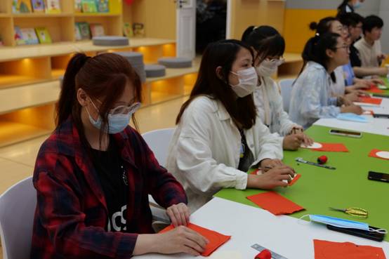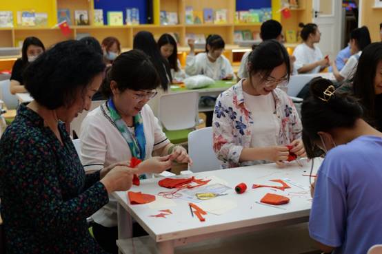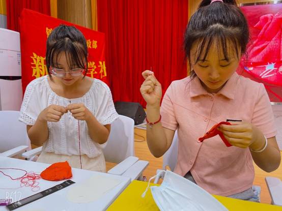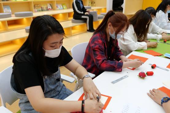 在宋老师的指导下,师生们拿起布料、丝线、香草、花瓣等原料,精心制作香囊。