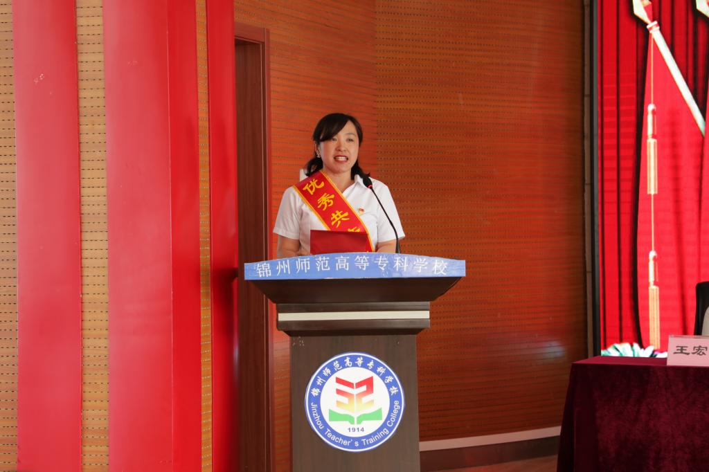 党委副书记齐立石宣读《中共锦州师范高等专科学校委员会关于表彰“两优一先”的决定》。大会对51名优秀共产党员、26名优秀党务工作者、8个先进基层党组织予以表彰并颁发了证书和奖牌。