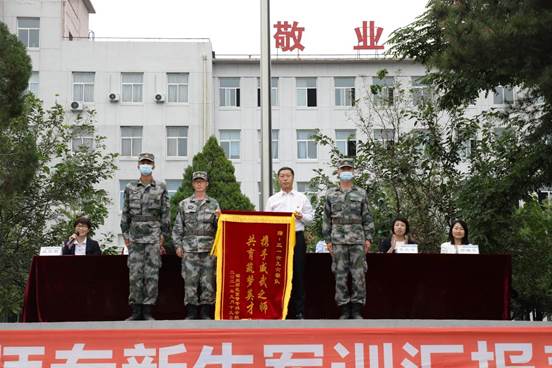 孙志海代表学校向承训部队赠送锦旗,表达我校对承训部队官兵的真诚感谢!
