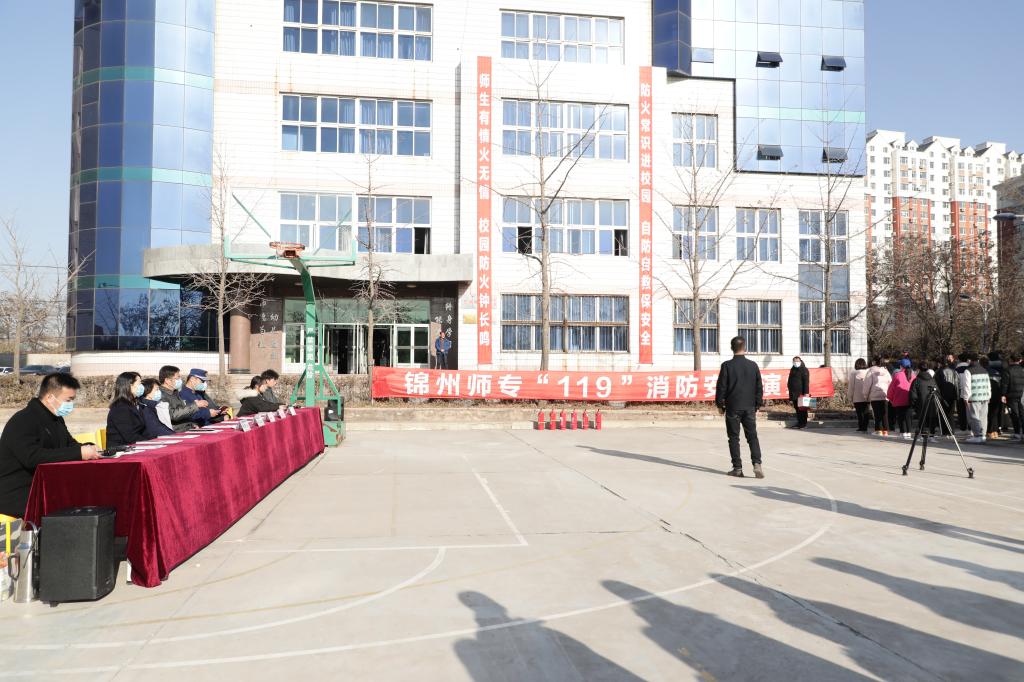 为贯彻落实“119”消防安全宣传月活动,增强我校师生消防安全意识,掌握扑救初起火灾及火灾疏散逃生自救的基本方法,提高应对火灾突发事件的能力,我校联合锦州市凌河区消防大队、太和区消防大队于11月25日下午在艺术楼前举行2021年消防灭火、疏散演练活动。校长陈建军、党委副书记齐立石、副校长赵世国、纪委书记郜雅杰,凌河区消防大队、太和区消防大队相关负责人,校义务消防队成员及240余名师生骨干观摩活动。保卫处处长李志刚主持活动。