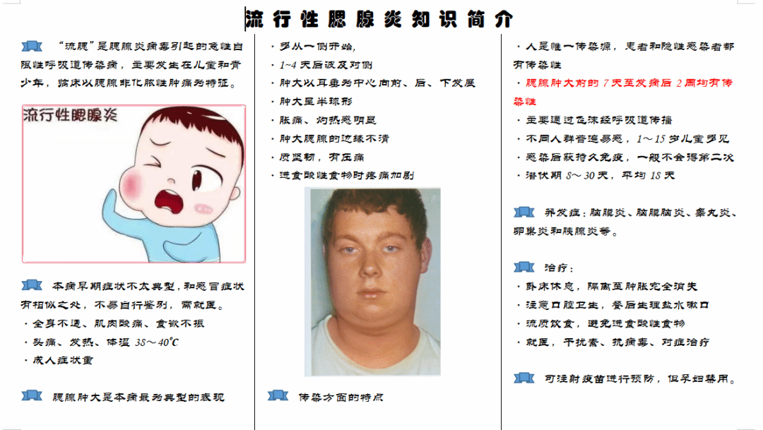 传染源:本病患者。本病在腮腺肿大前7天到发病后2周之间均有传染性。