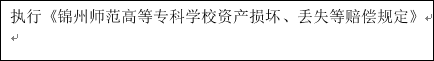 第二十条  低值耐用品的损坏、丢失等赔偿处理,参照《锦州师专固定资产损坏、丢失等赔偿规定》执行。
