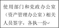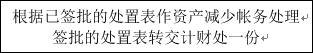 (一)党政办公室(资产管理办公室)根据上级部门的批复,通知有关部门的资产管理员,到党政办公室(资产管理办公室)办理注销资产账、资产卡的手续。