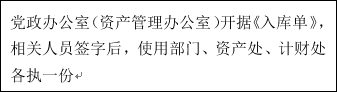 第九条  党政办公室(资产管理办公室)根据填制无误的“低值耐用品资产卡片”,开据“低值耐用品入库单”、编制记账凭证、记入“低值耐用品资产总账”和“低值耐用品资产明细账”,生成资产编号。