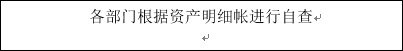 党政办公室(资产管理办公室)负责提供各部门资产明细账,各部门根据资产明细账进行账实自检,并核对资产卡片。自检完成后,将自检结果上传到党政办公室(资产管理办公室)