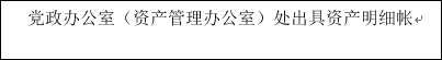 (一)资产实物,要求与党政办公室(资产管理办公室)账载资产相符。