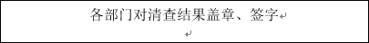 党政办公室(资产管理办公室)根据资产清查情况形成清查结果,各部门对清查结果进行盖章、签字。
