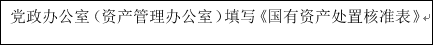 (三)党政办公室(资产管理办公室)审核无误后,由党政办公室(资产管理办公室)填写《行政事业单位国有资产处置核准表》,经校长办公会或党委会批准,报送市教育局、财政局审批。