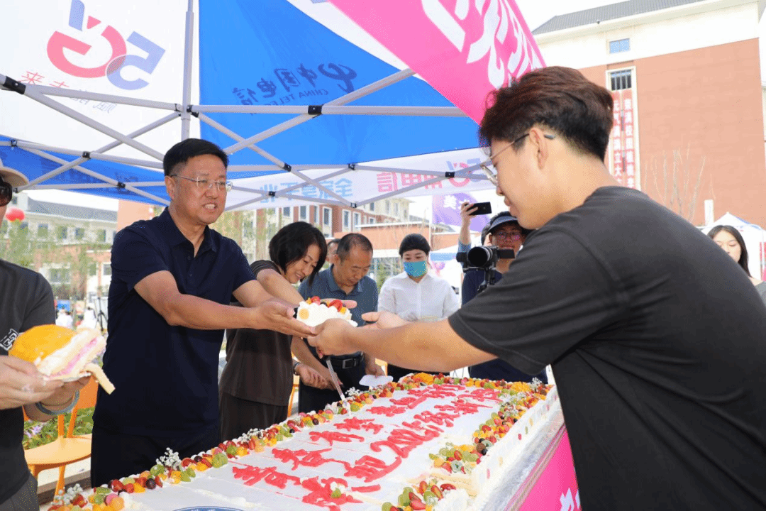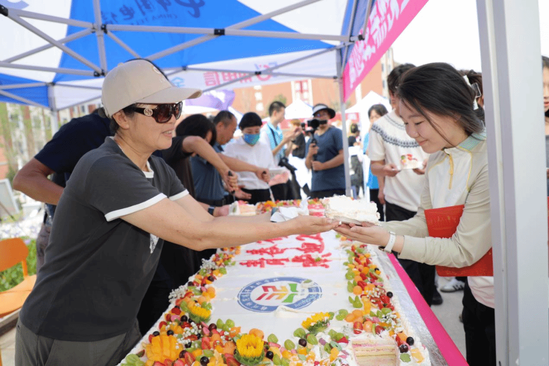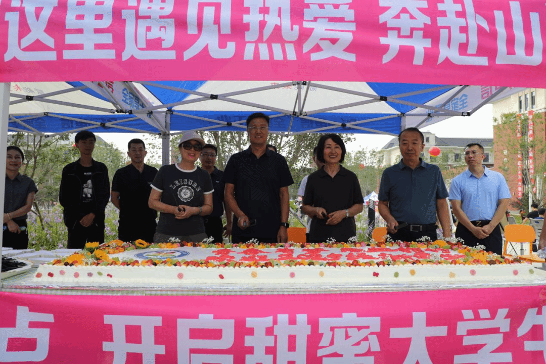 学校特别为2025级新生们制作了“迎新蛋糕”,校领导还为过生日的两位新生代表献上生日蛋糕。