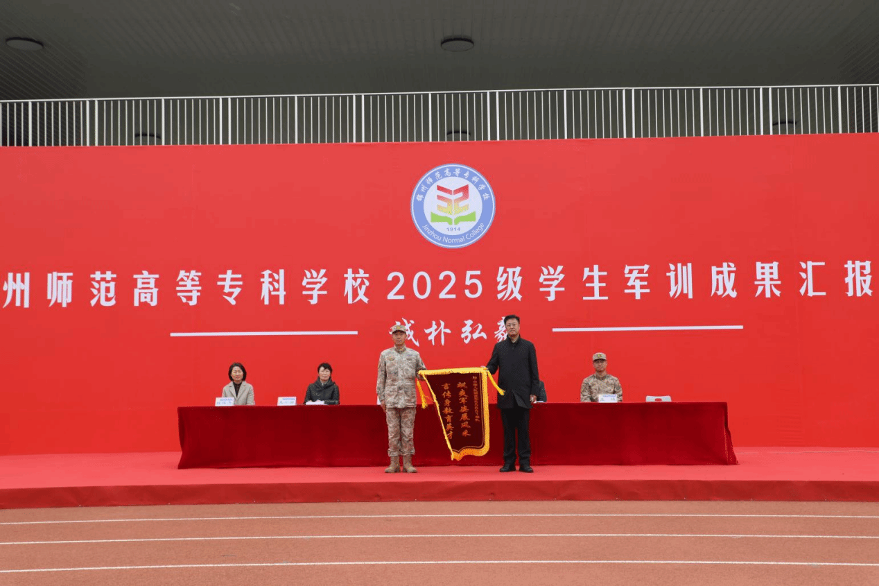 汇演结束后,经过对军训以来各个学院队伍的综合考评,最终评选出五个2025级学生军训工作先进集体。张宝利宣读了表彰决定,校领导和部队领导为计算机科学学院、学前与音乐教育学院、环境与健康学院、体育教育学院和小学教育学院五个获奖集体进行了颁奖。