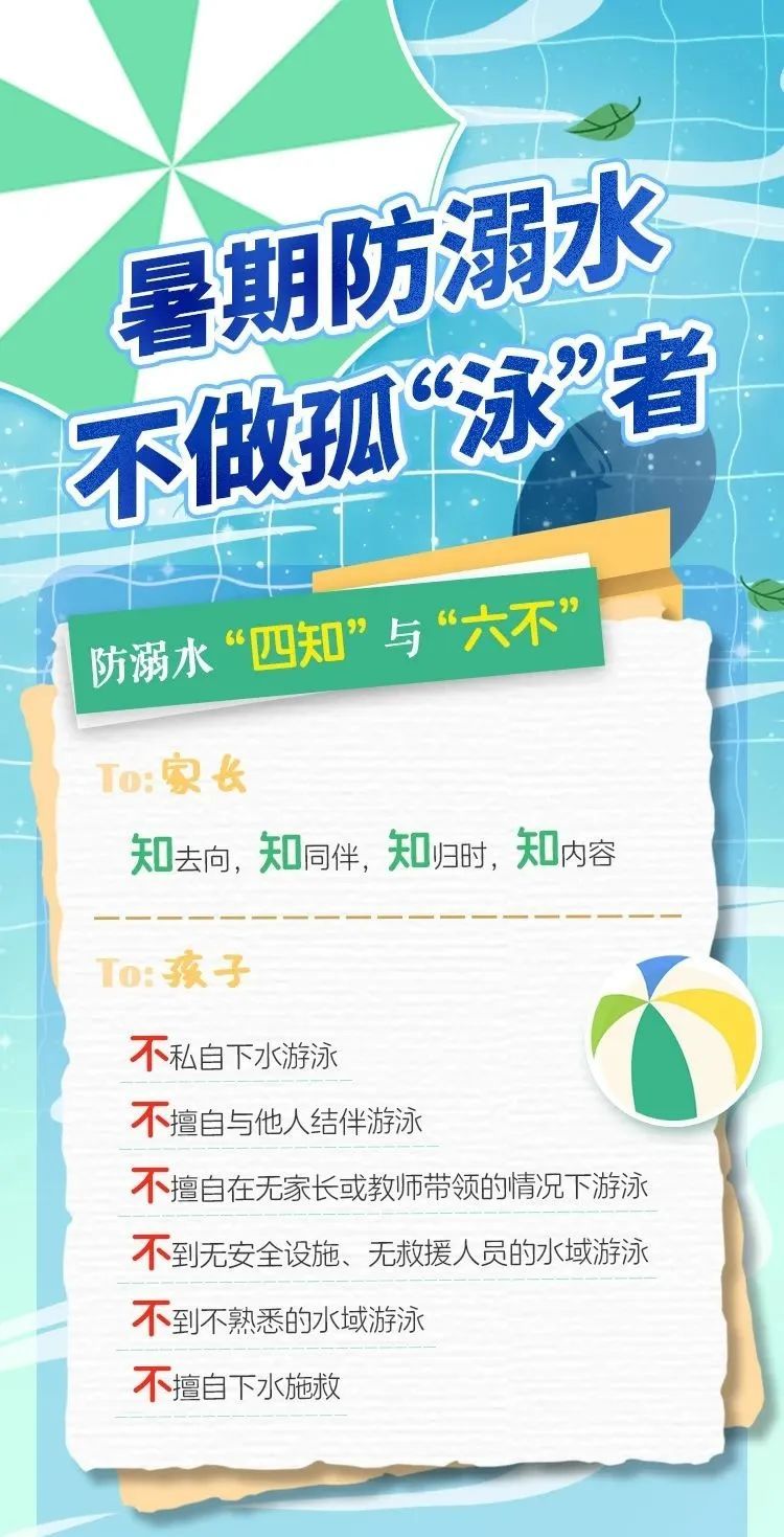 为切实保障学生的生命财产安全,增强防溺水意识,防范意外发生,我校诚挚地向全体学生及家长发出这封防溺水安全信,希望大家携手共筑防溺水安全网,共同守护学生们的夏日安全。