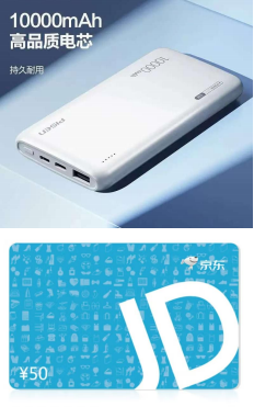 四等奖 | 便携式充电宝/50元京东E卡(两种随机发放,不可选) |