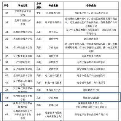 四、辽宁省“订单、定制、定向”人才培养模式改革示范专业