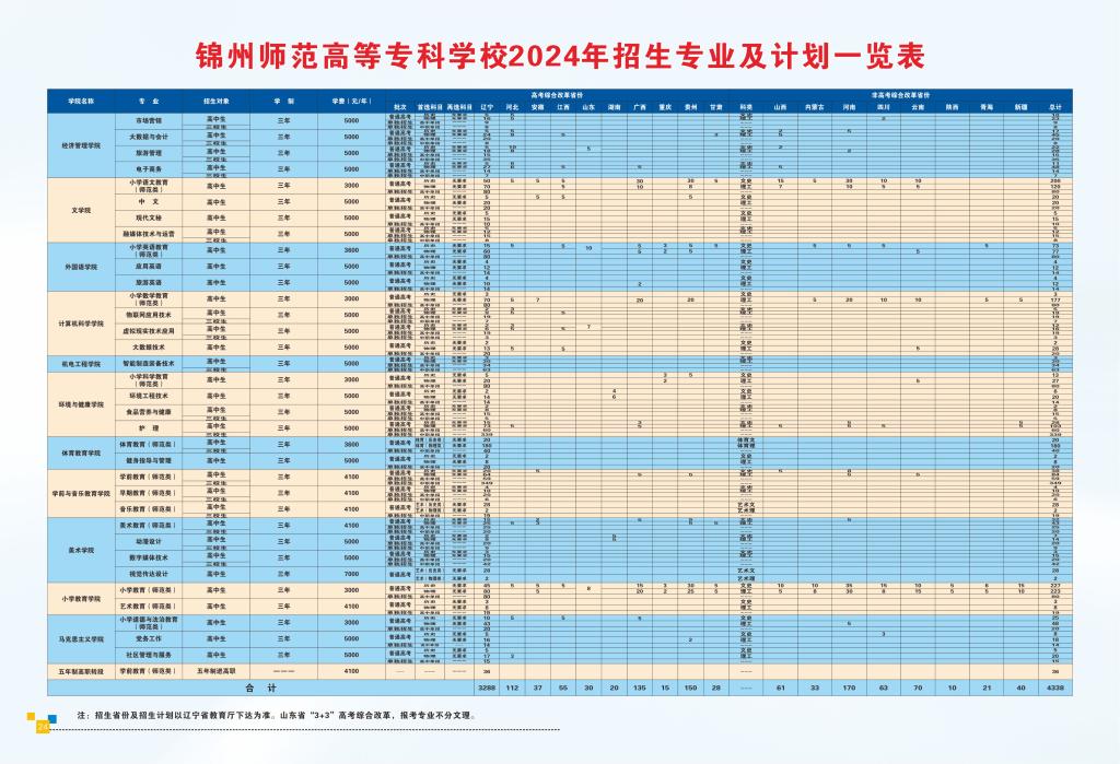 锦州师专2024年艺术类招生专业对应的省统考科类汇总表