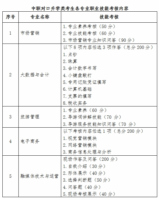 3.中职对口升学类考生各专业职业技能考核要求详见各专业职业技能考核大纲。