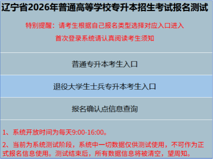 1.考生登录“辽宁招生考试之窗”,进入“网报中心”栏目的“辽宁省普通高校专升本招生考试网上报名系统”