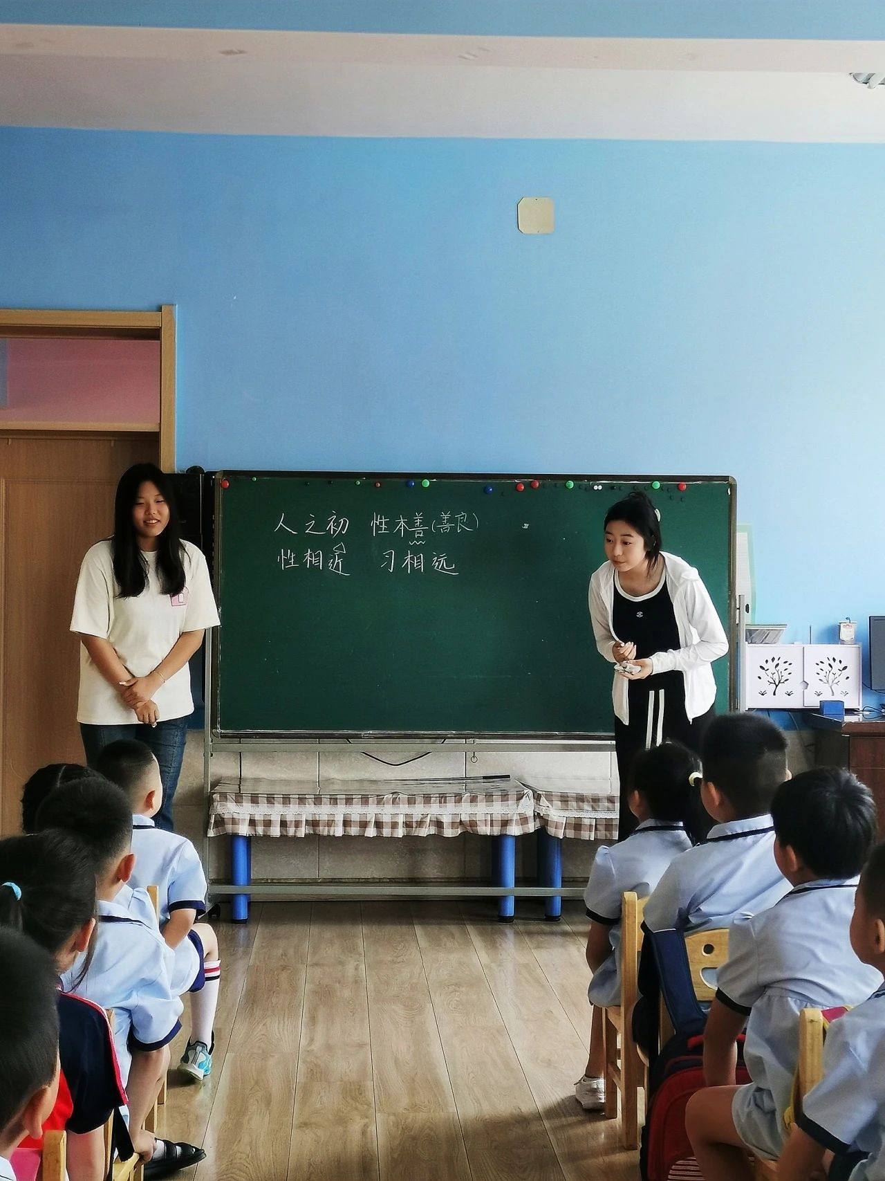 为深入宣传“推普助力乡村”社会实践主题,进一步提高语言文字规范意识和推普参与意识,构建规范生动的语言环境,推动经典诵读走进校园,形成共同说好普通话、传承经典诗词的氛围。7月17日,“同心同语润乡土”志愿服务队走进北镇市幼儿园和正安镇九年一贯制学校小学部进行典耀中华读书行送教下乡社会实践活动
